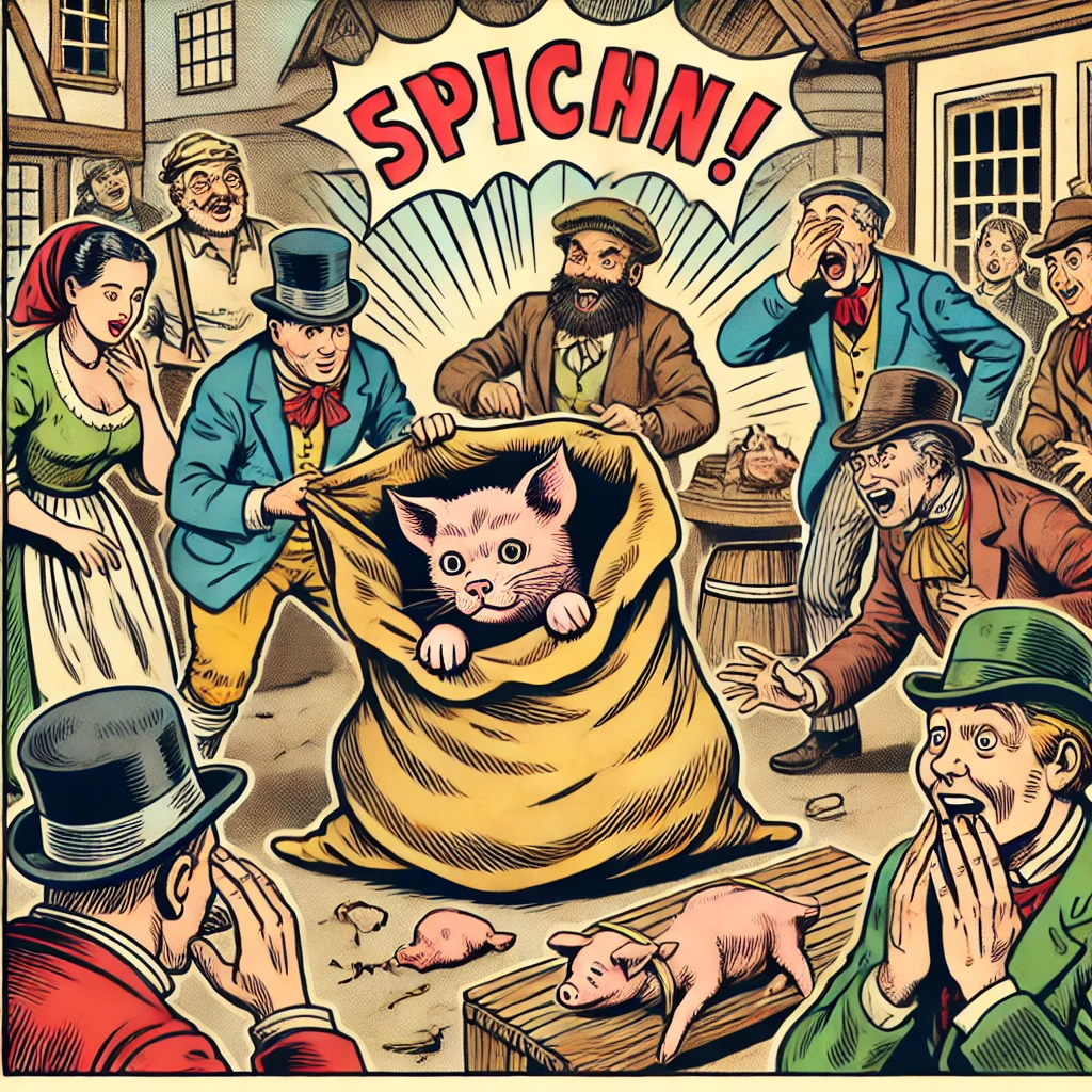 과거 영국의 시장에서는 돼지를 자루에 담아 팔던 시절이 있었습니다. 하지만 일부 장사꾼들은 돼지 대신 크기가 비슷한 고양이를 자루에 넣어 속이려 했다고 해요.