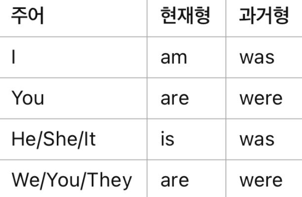 Be동사의 형태는 주어에 따라 변하는데요, 아래 표를 보면 이해하기 쉬워요!