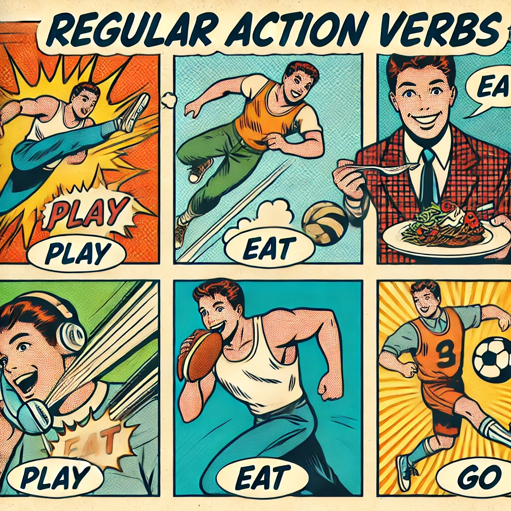 이제 일반동사에 대해 알아볼까요? 일반동사는 행동이나 동작을 나타내는 동사예요. 우리가 흔히 알고 있는 go, eat, play, study, like, love 같은 동사들이 여기에 해당돼요. 쉽게 말해 ‘~다’로 끝나는 단어는 일반동사라고 생각하시면 됩니다:)