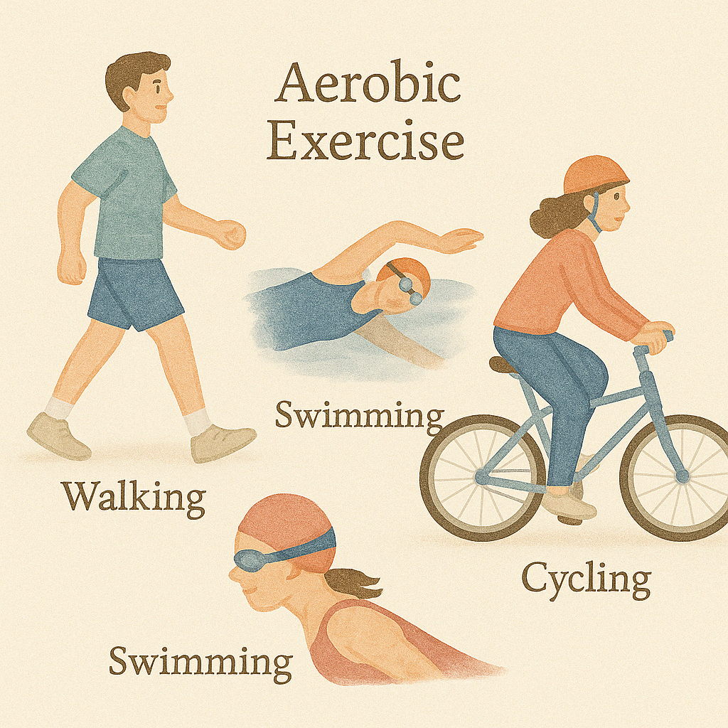 • Aerobic activities like walking, cycling, or swimming